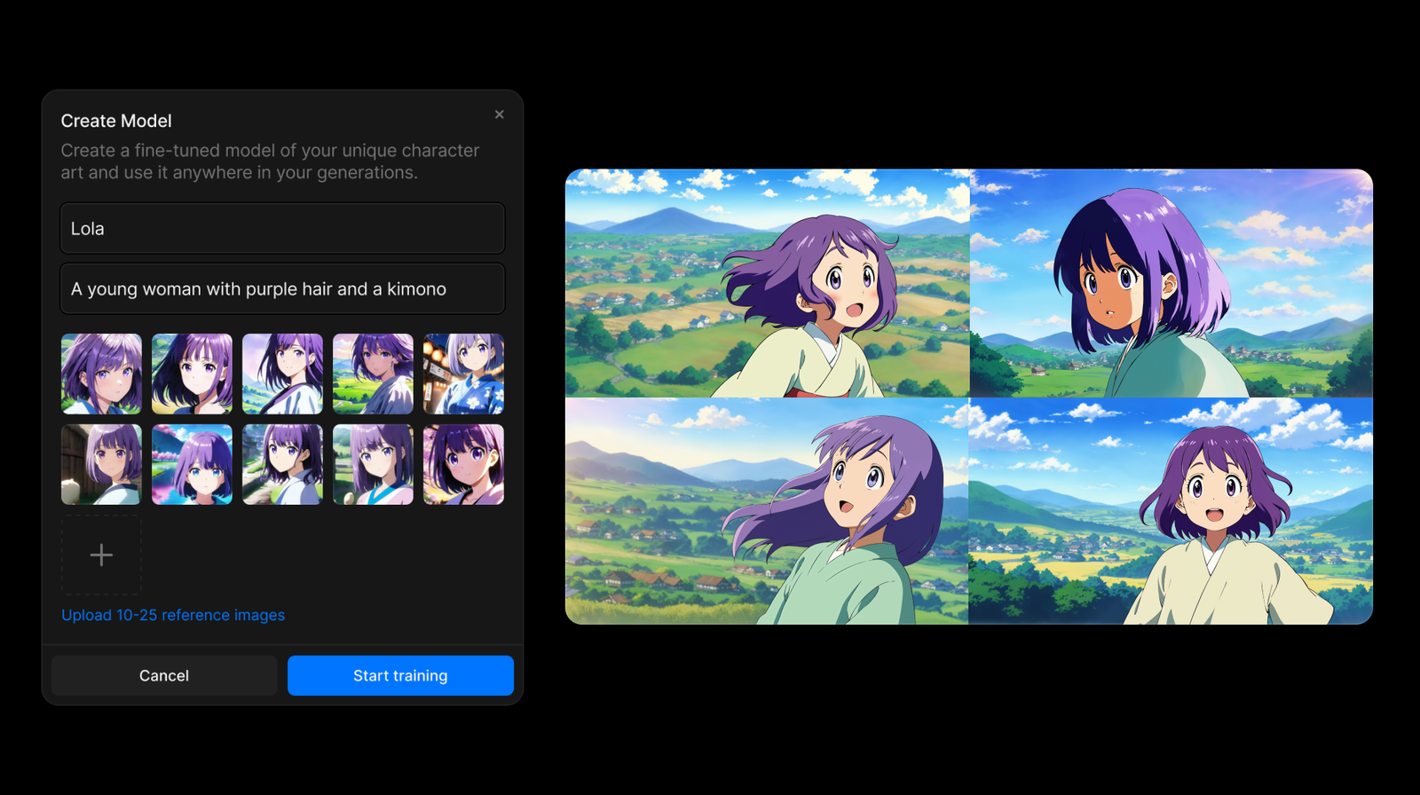 Once trained, this model becomes your creative ally. You can use it to generate the same character in any pose, scene, or situation—all while retaining the distinctive style and details that define them. Character Models make it possible to bring different moments to life without compromising their identity. It ensures your character remains consistent, freeing you to focus on storytelling.